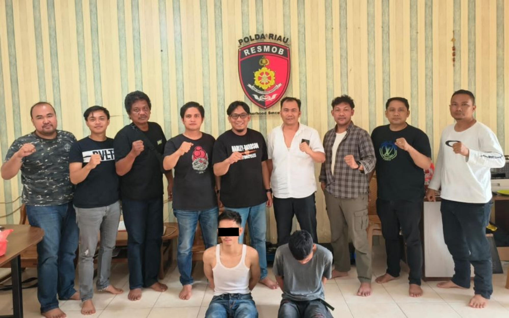 📸 Tim Gabungan Resmob Jatanras Polda Riau dan Polresta Pekanbaru ber5 mengamankankan dua dari lima pelaku begal.(Sumber/doc: MCR)