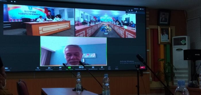 Zoom meeting bertempat di Kantor Bappeda Bengkalis, Jalan Antara terlaksana jelang pembahasan persiapaan panitia pengukuhan Pengurus DMDI Kabupaten Bengkalis periode 2021-2025.