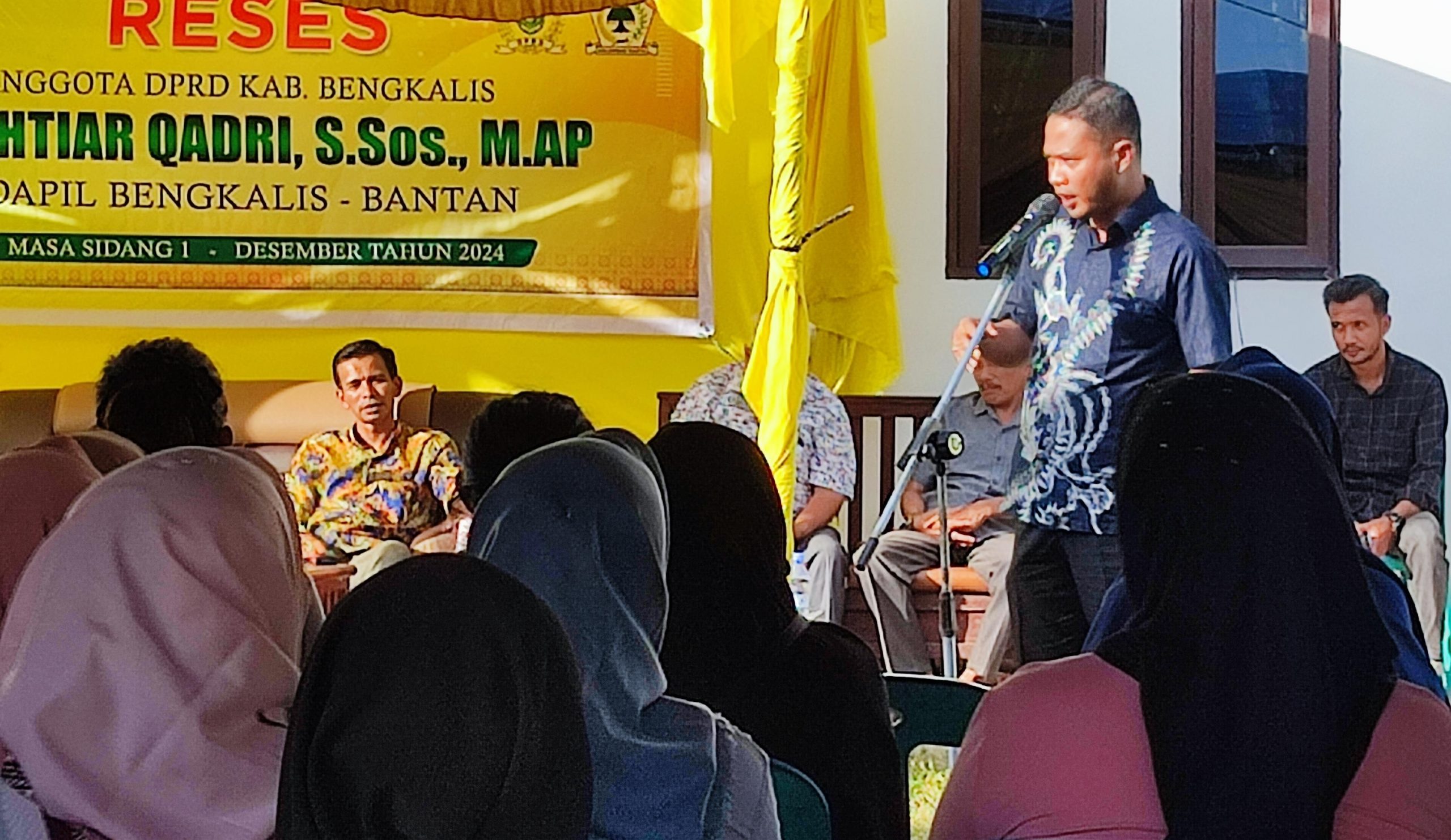 Prodesanews.com | BENGKALIS – Anggota Komisi III DPRD Kabupaten Bengkalis, Fakhtiar Qadri, S.Sos., M.AP., mengadakan reses masa sidang I tahun 2024/2025 sekaligus titik reses terakhir di Desa Pangkalan Batang, Kecamatan Bengkalis, Kamis (20/12/2024). Acara tersebut berlangsung dari pukul 16.30 hingga 17.30 WIB dan dihadiri oleh tokoh masyarakat serta ratusan warga setempat.