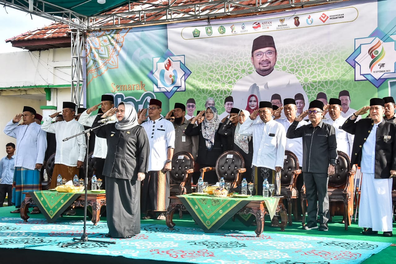 Prodesanews.com | BENGKALIS – Bupati Bengkalis Kasmarni menjadi Inspektur upacara (Irup) pengibaran bendera merah putih dalam rangka memperingati Hari Santri Nasional (HSN) yang dilaksanakan di halaman Sekolah Tinggi Agama Islam (STAIN) Bengkalis, Minggu (22/10/2023) pagi.