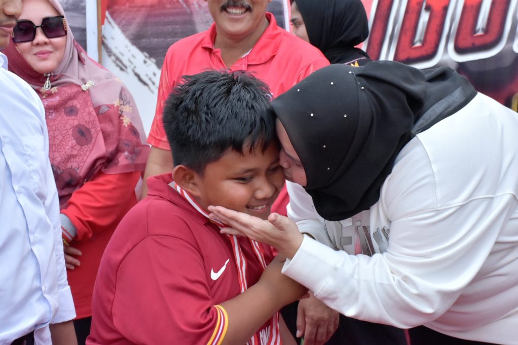 Bupati Bengkalis Kasmarni, Bersama Kadis Disparbudpora Edi Sakura, Kadis Pendidikan,serta Pengurus IGORNAS di acara Penutupan Turnamen Sepakbola tingkat pelajar di Batin Sholopan Perbesar