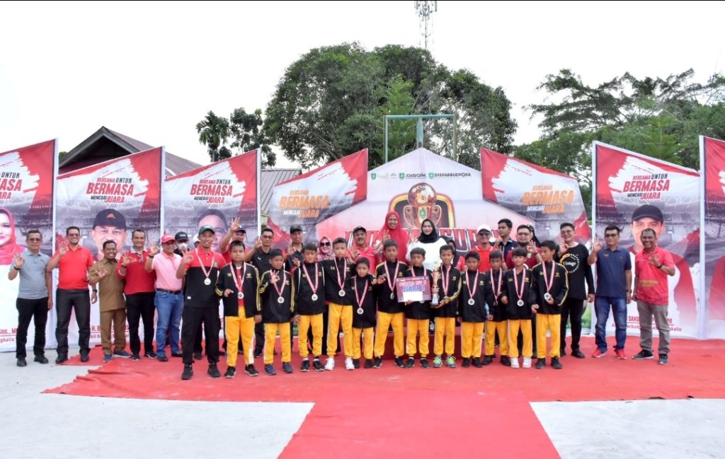 Bupati Bengkalis Kasmarni dalam arahannya saat penutupan turnamen antar pelajar tersebut memberikan ucapan selamat kepada pemenang.
