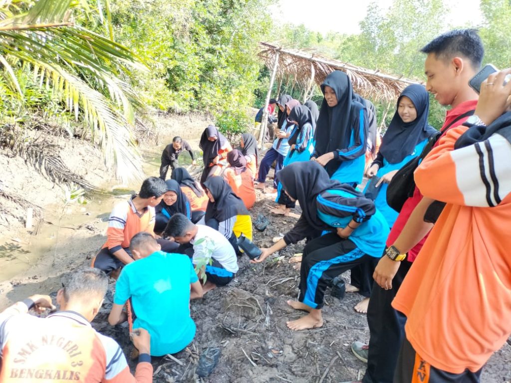 Dengan mengusungkan tema “Edukasi Mangrove, Manfaat Magrove dan Menabung Lumpur untuk Masa Depan”. kegiatan peduli lingkungan melibatkan 30 siswa SMKN 3 Bengkalis.