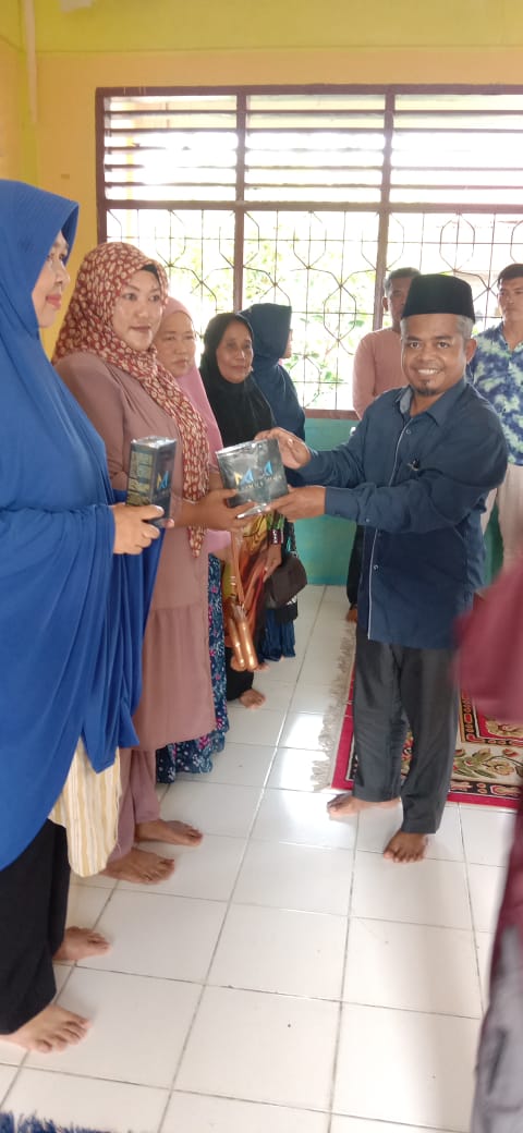 Ketua Koprasi Syariah BMT Bina Khairuummah menyerahkan sembako kepada anggota koprasi Perbesar
