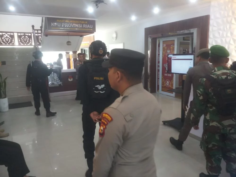 Menanggapi hal tersebut, Kepolisian Daerah (Polda) Riau melakukan patroli dan pengamanan di lingkungan sekitar Kantor KPU. Kegiatan ini diintensifkan untuk menyamakan persepsi dalam menjaga dan mengamankan stabilitas keamanan.