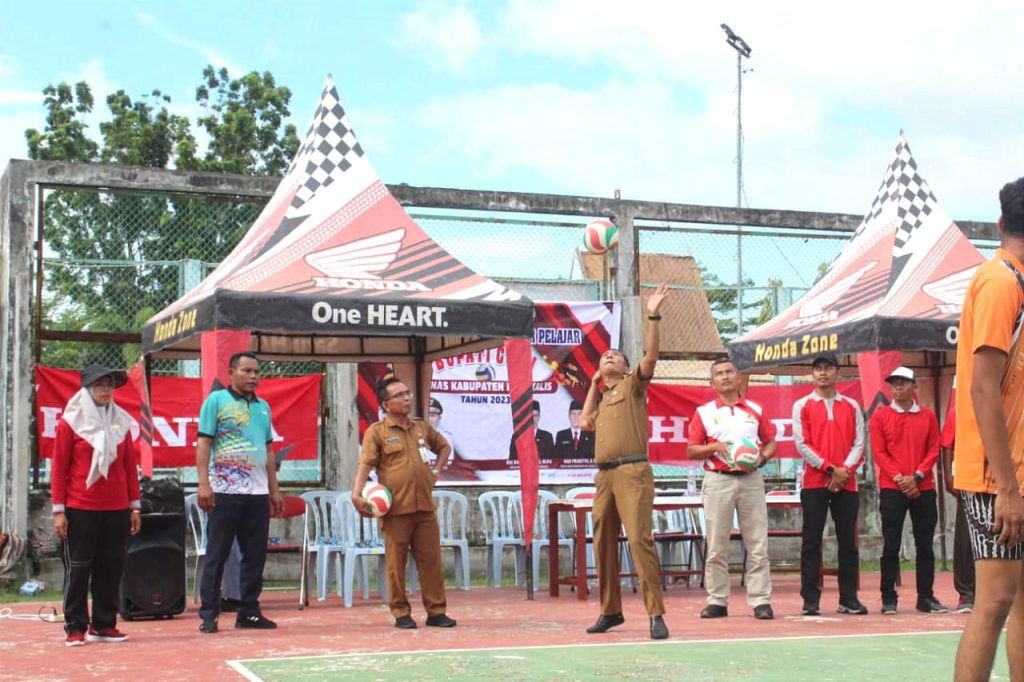 BENGKALIS,PRODESANEWS.COM – Kepala Dinas Pariwisata Kebudayaan Pemuda Dan Olahraga (Disparbudpora Kabupaten Bengkalis Edi Sakura, S.pd,M.Pd melalui Kepala Bidang Olahraga Dirhamsyah membuka secara resmi turnamen Bola Voli Antar Pelajar Bupati Cup 1 di Lapangan Voli Batu Ampar Jalan Arif Rahman Bengkalis, Senin, (20/11/2023)