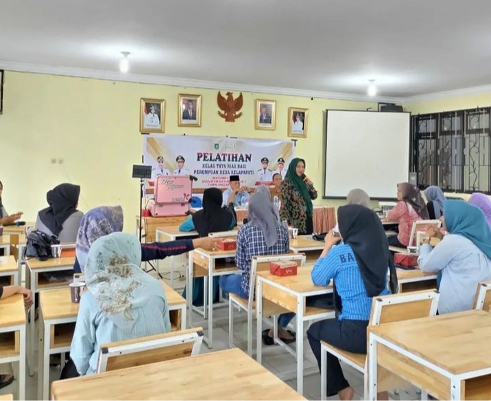 Kelapapati- Pemerintah Desa (Pemdes) Kelapapati Kecamatan Bengkalis menggelar kegiatan Pelatihan Tata Rias bagi Perempuan Desa Kelapapati di Aula Kantor Kepala Desa pada, Selasa, (5/12/2023).