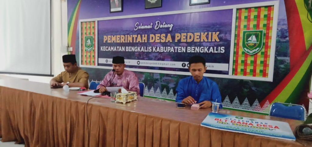 Pedekik,Prodesanews.com- Pemerintah Desa (Pemdes) Pendekik Kecamatan Bengkalis menyalurkan Bantuan Langsung Tunai Dana Desa (BLT-DD) tahap VII Kepada 62 Kelompok Penerima Manfaat (KPM) di Aula Kantor Kepala Desa, Pada Jumat, (2/8)