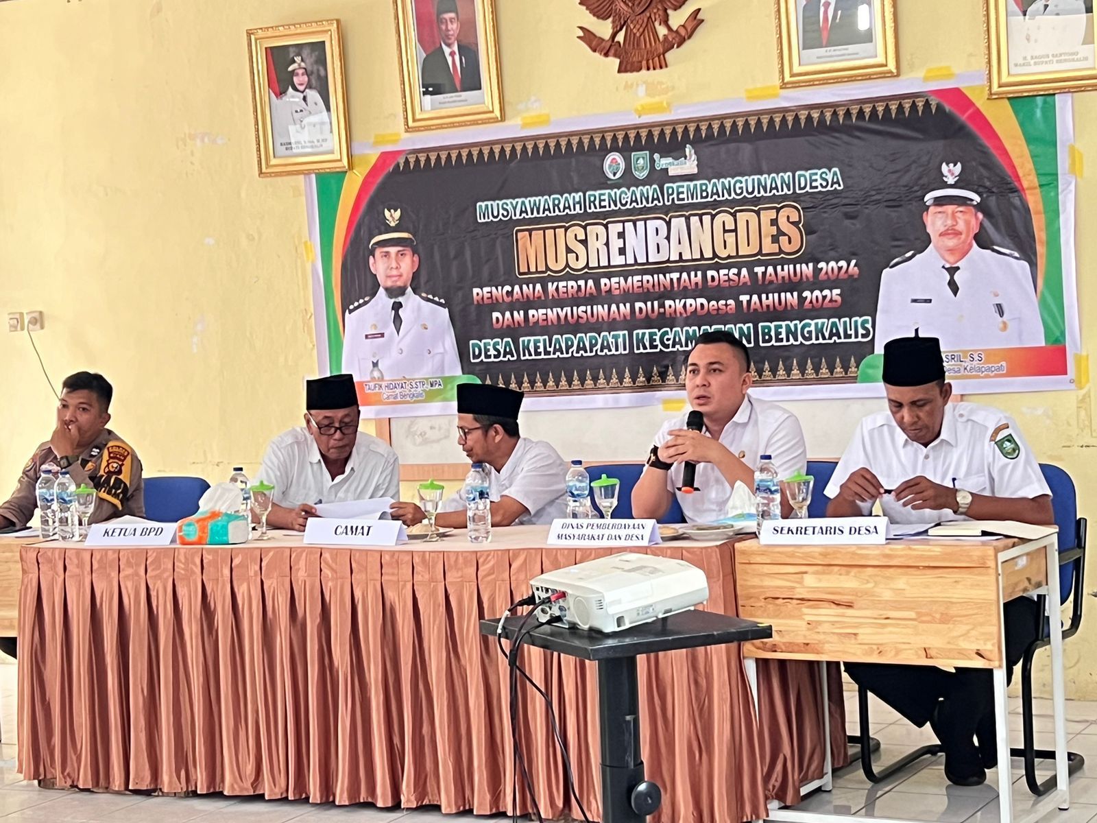 “ Kami dari pemerintah Desa Kelapapati Kecamatan Bengkalis mengucapkan selamat datang dan terima kasih atas kehadiran Bapak Camat Bengkalis, Plt. Dinas Pemberdayaan Masyarakat Desa serta perwakilan dari beberapa dinas di lingkungan Kecamatan Bengkalis, tentunya kami berharap memalui kegiatan Musrenbangdesa kelapapati ini setidaknya dapat melihat peluang-peluang Pembangunan untuk tahun 2024,” ujar Edi Firdaus.
