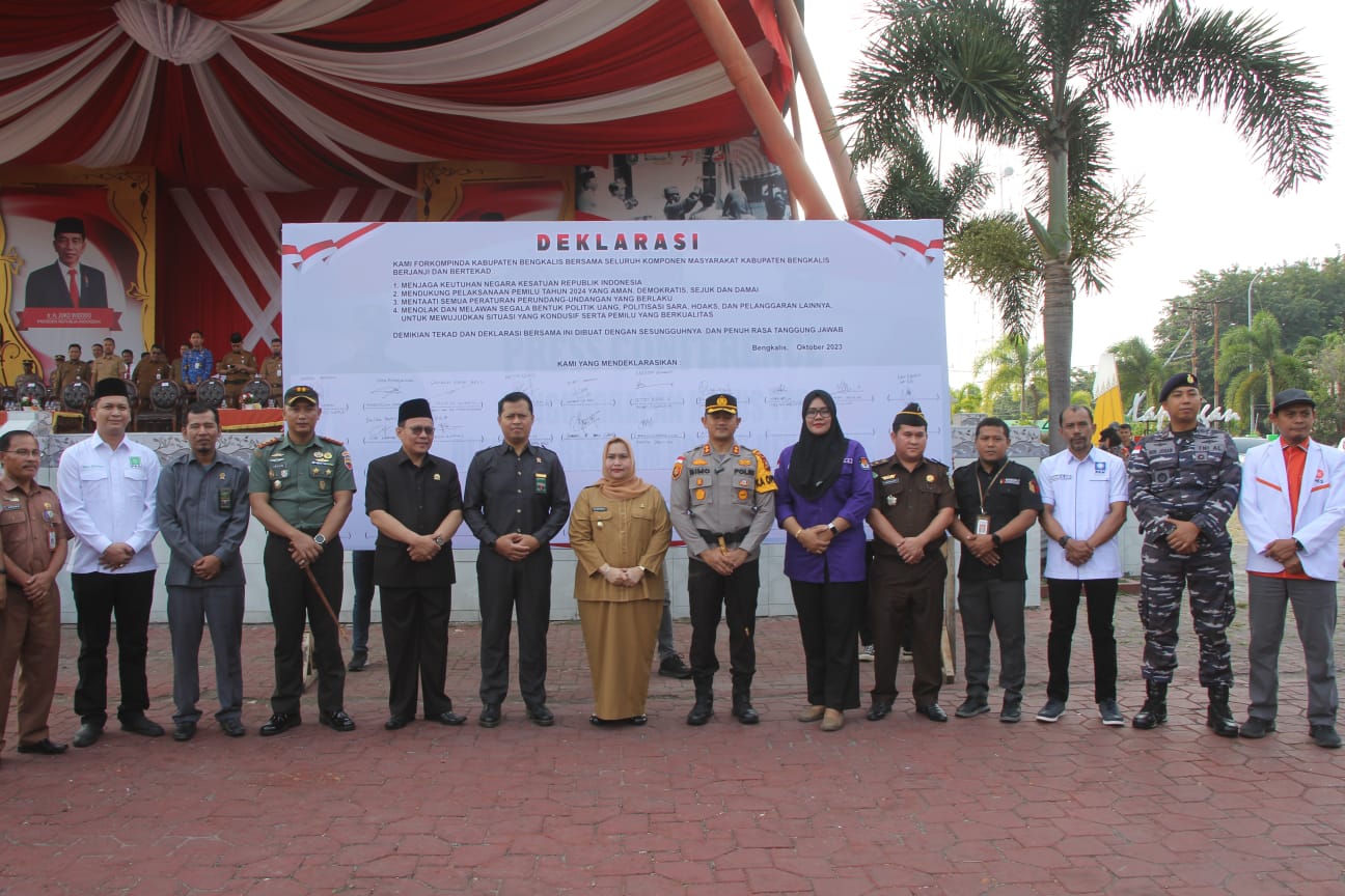 Kapolres Bengkalis AKBP Setyo Bimo Anggoro dalam amanatnya menyampaikan bahwa Pemilu 2024 adalah momen penting bagi bangsa Indonesia dalam menjalankan demokrasi, dan merupakan titik penentuan masa depan.