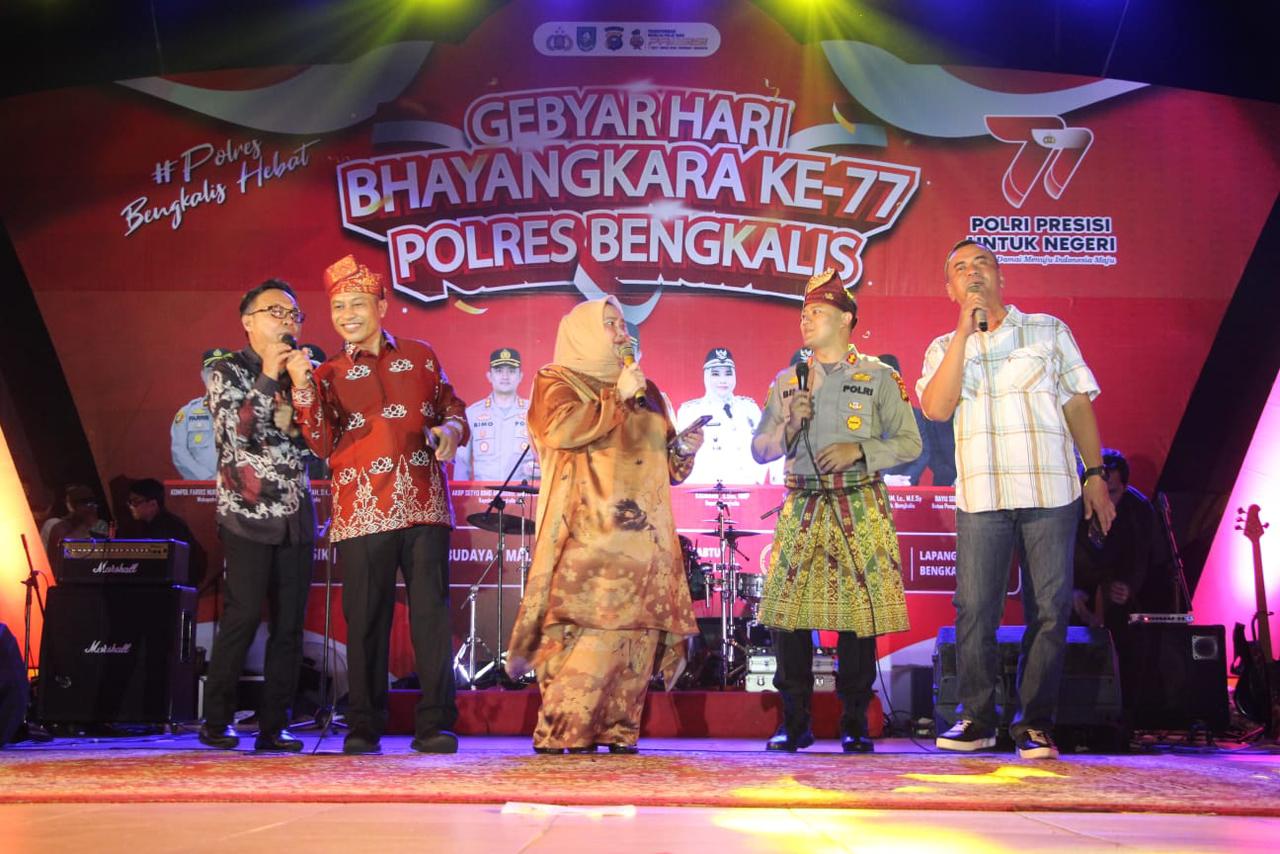 PRODESANEWS.COM | BENGKALIS – Polres Bengkalis menggelar malam puncak HUT Bhayangkara ke-77 di Lapangan Tugu, Jl Jend A. Yani Bengkalis, Sabtu (1/7/2023) sekira pukul 20.00 Wib.
