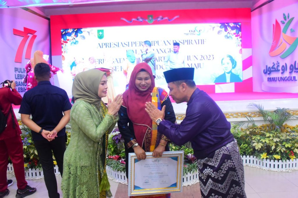Penghargaan tersebut diserahkan oleh Wakil Gubernur Riau Edy Natar Nasution didampingi Wakil Ketua I TP-PKK Provinsi Riau Hj Suti Mulyati dan Kepala Kepala Dinas P3AP2KB Provinsi Riau, Hj Fariza kepada kepada 12 Perempuan berjasa dan berprestasi dibidang Pendidikan, Kesehatan, Sosial Budaya, Lingkungan Hidup dan Pertanian di Provinsi Riau, dengan memberikan Piagam Penghargaan, Plakat, dan Uang Tunai sejumlah Rp.3 juta serta uang tabungan BRK Syariah sebesar Rp. 5 juta.